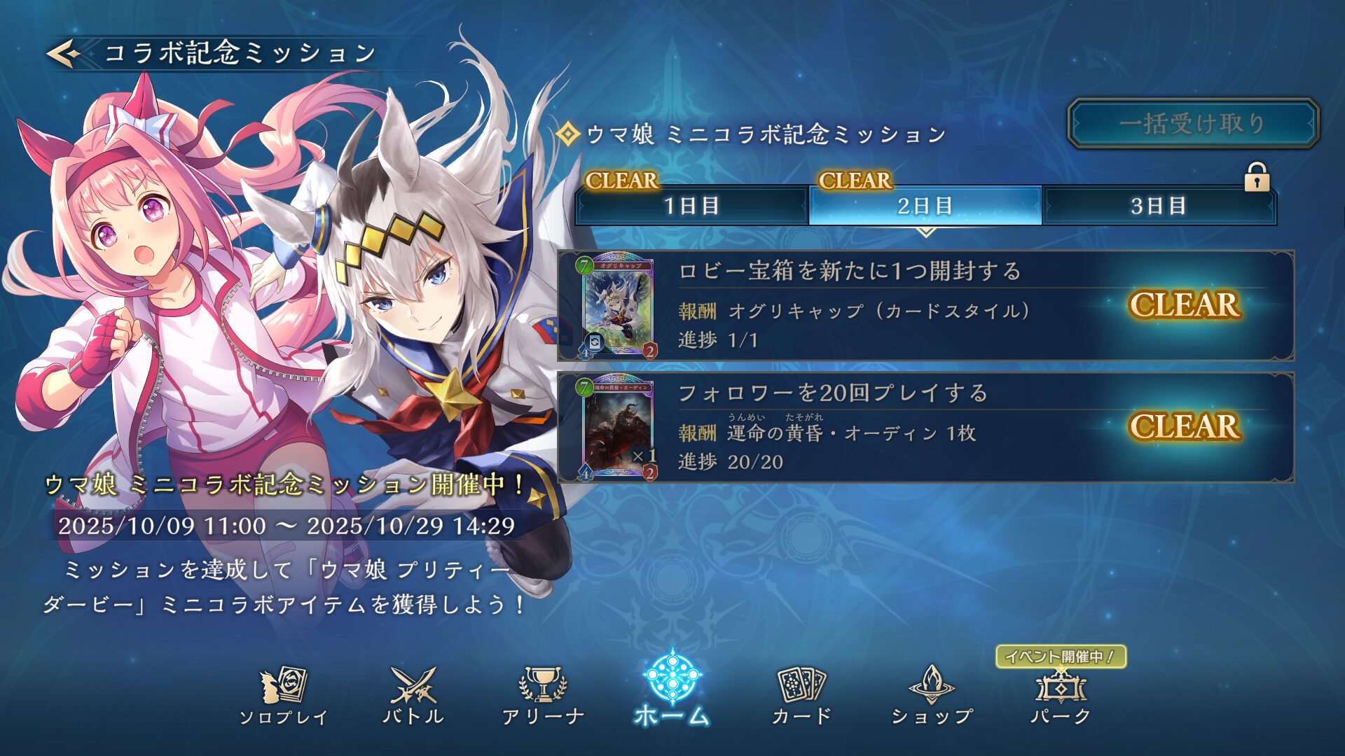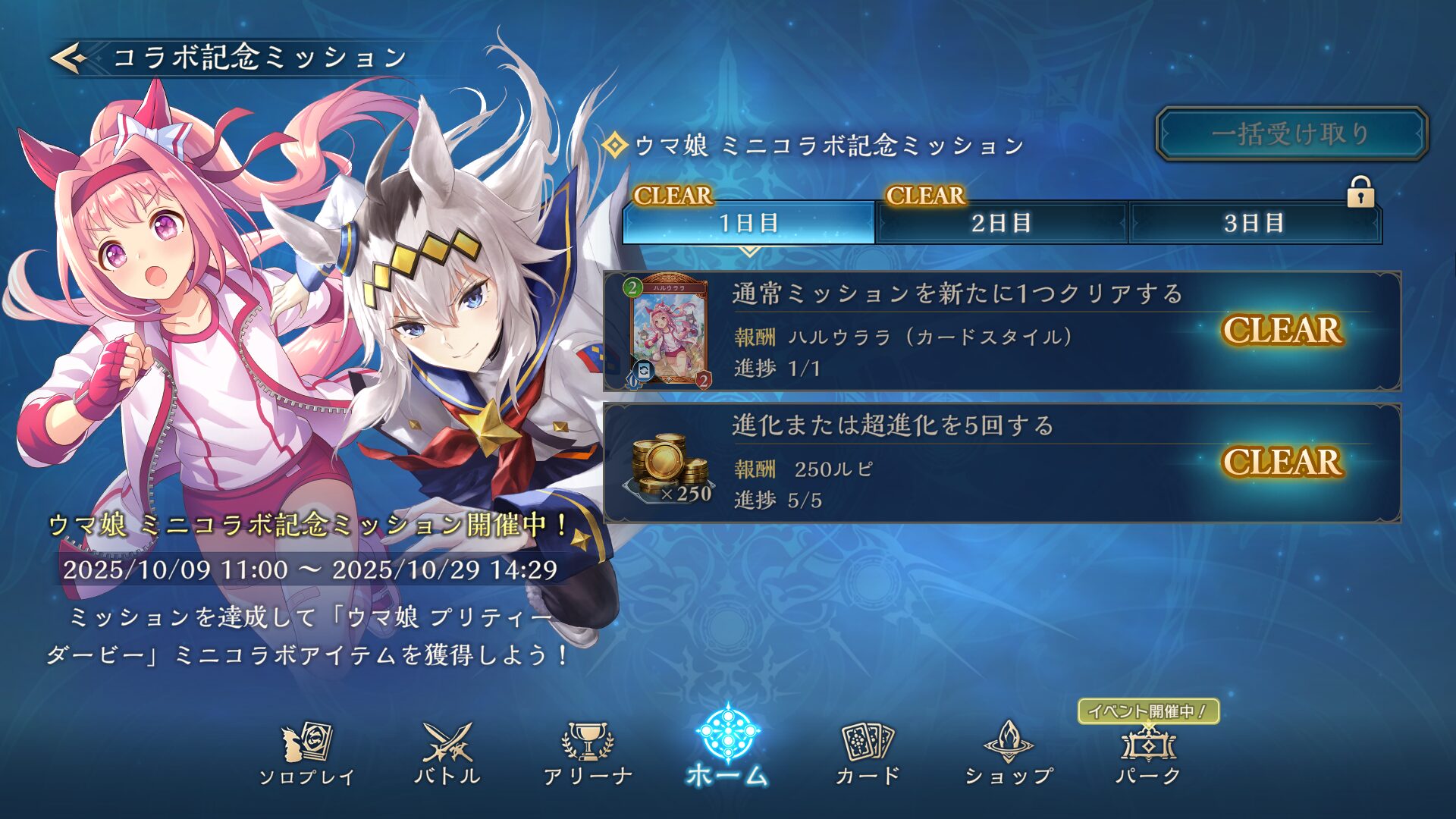 コラボ記念ミッションの開催が決定!ミッションをクリアして、「ハルウララ」「オグリキャップ」のカードスタイルやコラボ称号をゲットしよう✨