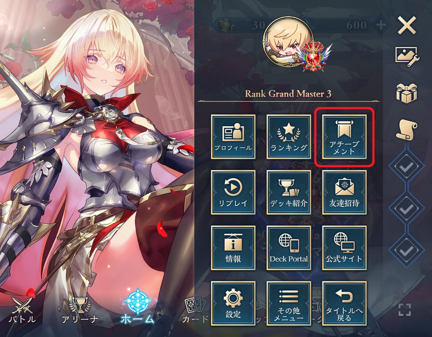 アチーブメントからミッションの進行状況を確認することができます。